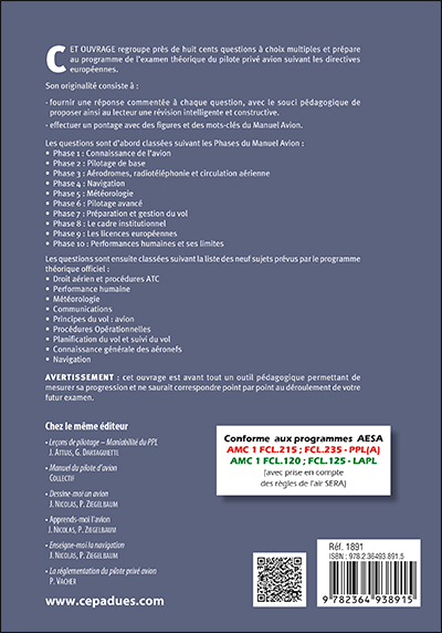 Titre : Les questions PPL(A) ou LAPL(A) en lien avec le Manuel du pilote Avion - conforme AESA QCM Avion
