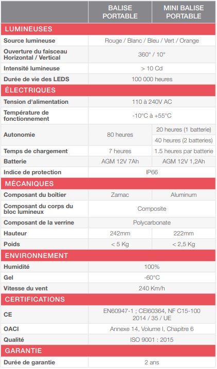 Notre balise portable est une balise monobloc autonome dotée de la technologie multi-LEDs. Dédiée au balisage de piste, cette balise autonome fonctionne sur batterie, elle offre des avantages exceptionnels en termes de longévité (100 000 heures), d’autonomie sur batterie (+80h) et de résistance. Enfin, le chargeur est intégré à la balise pour une portabilité accrue.