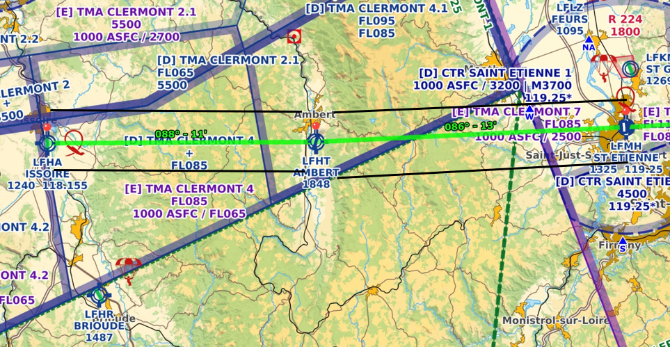 Pour chaque segment, vous déterminerez le cap à suivre ainsi que la distance de vol à l’aide d’une règle et d’un rapporteur, ou encore mieux : d’une règle de route avec rapporteur. Et à partir de là, le temps de vol par segment et le temps de vol total (en prenant en compte le vent !).