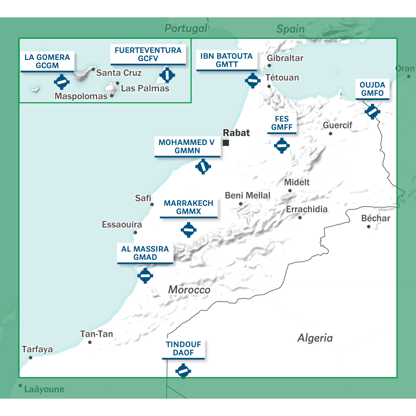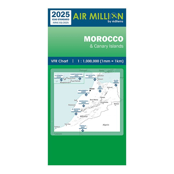 La carte AIRMILLION Morocco 2025 est conçue pour offrir une navigation VFR (Visual Flight Rules) précise et fiable dans l’espace aérien marocain. C’est un outil incontournable pour les pilotes qui volent au-dessus de ce pays d'Afrique du Nord, où les conditions géographiques et aéronautiques varient considérablement, allant des régions montagneuses aux zones côtières. Avec une mise à jour conforme aux normes AIRAC les plus récentes, cette carte fournit des informations actualisées et essentielles pour assurer une navigation en toute sécurité dans un espace aérien complexe.