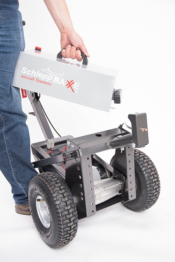 Le tracteur de charge TowFlexx TF2 est similaire au TF1 mais avec un moteur et une batterie plus puissants. Il permet de changer rapidement d’aéronef sans outils grâce à un adaptateur universel. L’adaptateur est actionné par un câble Bowden ergonomiquement placé sur la poignée, facilitant ainsi la connexion à la roue avant de l’avion. La batterie est amovible et peut être rechargée n'importe où. Le TF2 peut également servir de GPU, bien qu’il ne soit pas conçu pour démarrer les moteurs.