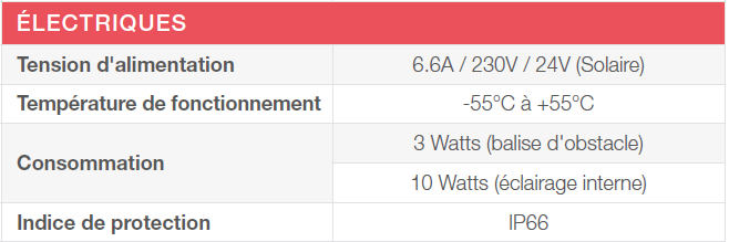 Caractéristiques des balises d'éclairage pour aérodrome :