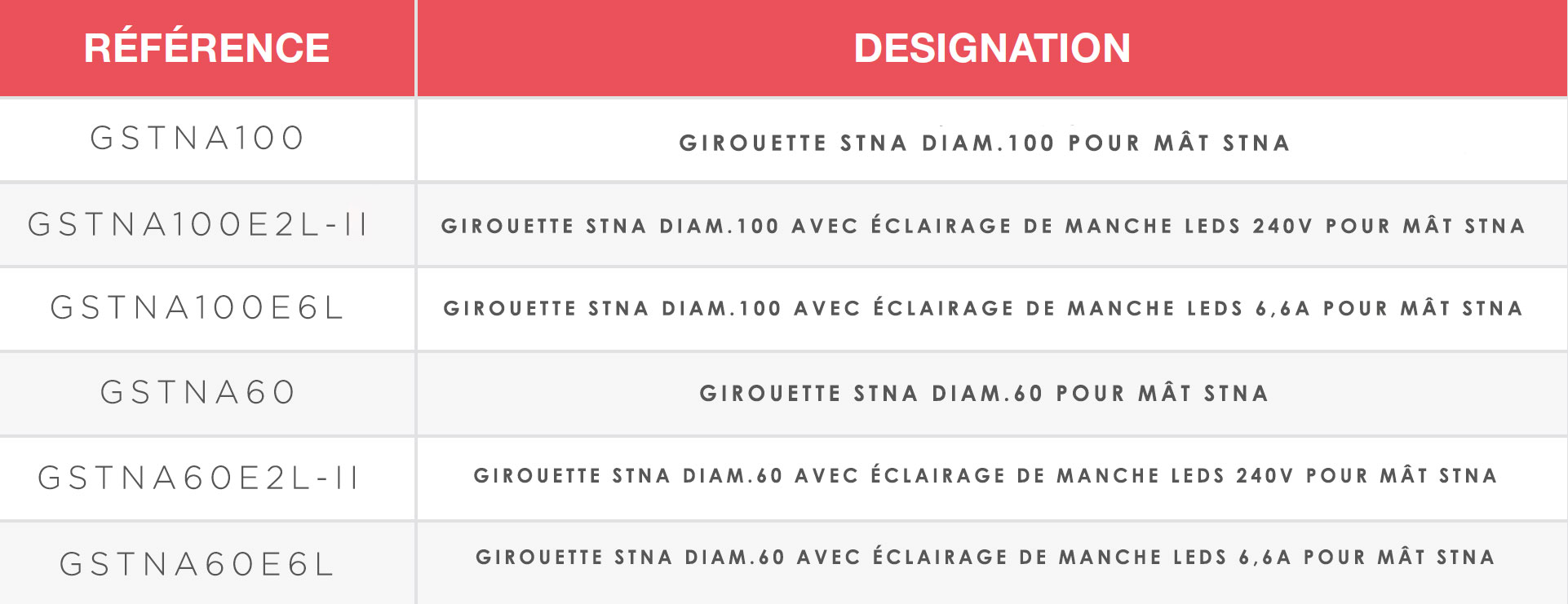 Girouette pour mât STNA, diam. 100 & 60