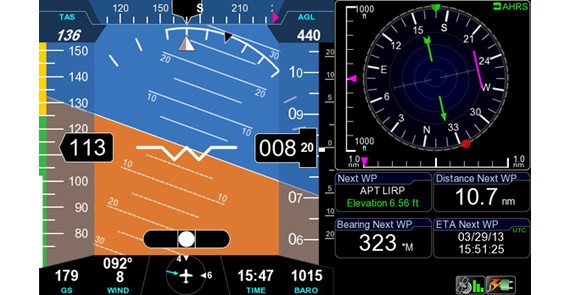 L’A2 ADAHRS d’AvMap augmente les fonctionnalités du GPS aéronautique EKP V et le transforme en EFIS AvMap (Système d’information de vol électronique), un écran d’affichage centralisé pour la navigation et l’information primaire de vol.