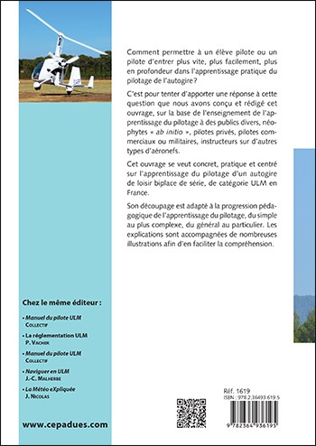 Cet ouvrage se veut concret, pratique et centré sur l’apprentissage du pilotage d’un autogire de loisir biplace de série, de catégorie ULM en France.