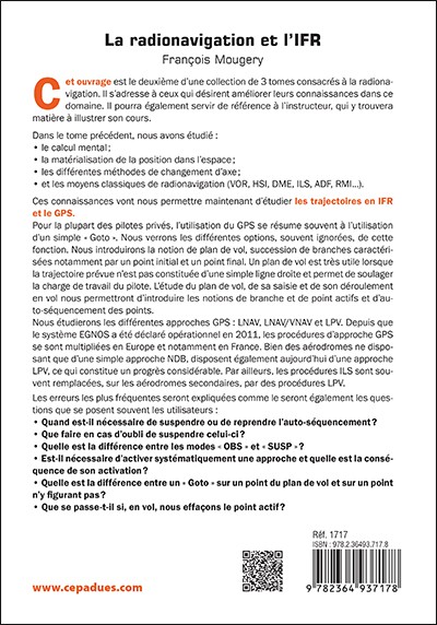 Cet ouvrage est le deuxième d’une collection de 3 tomes consacrés à la radionavigation. Il s’adresse à ceux qui désirent améliorer leurs connaissances dans ce domaine. Il pourra également servir de référence à l’instructeur, qui y trouvera matière à illustrer son cours.