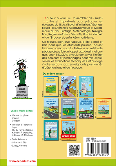Ce recueil ludique, a été pensé et bâti pour que les étudiants puissent passer l’examen avec succès. Fidèle à sa méthode pédagogique faisant appel aux dessins et croquis, Jean NICOLAS a voulu conserver l’intérêt des couleurs et personnages pour mieux présenter les explications techniques. Cet ouvrage s'adresse aussi aux enseignants passionnés d’aéronautique et de l’espace.