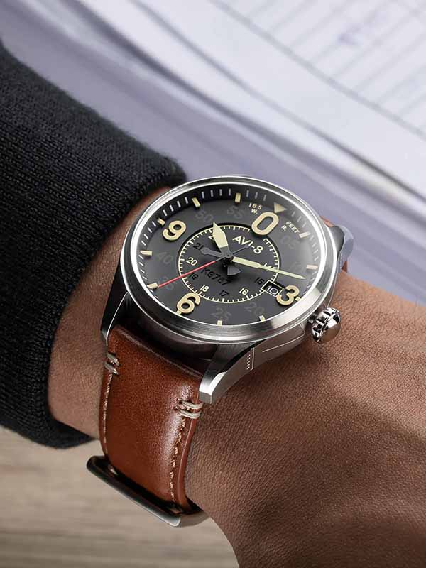 La Spitfire Smith Automatic est une montre de pilote magnifiquement conçue pour célébrer le travail innovant et inspirant de Joseph Smith, qui, en tant que concepteur en chef chez Supermarine, a finalement guidé le développement du Spitfire pour qu'il devienne l'avion majestueux que nous connaissons aujourd'hui.