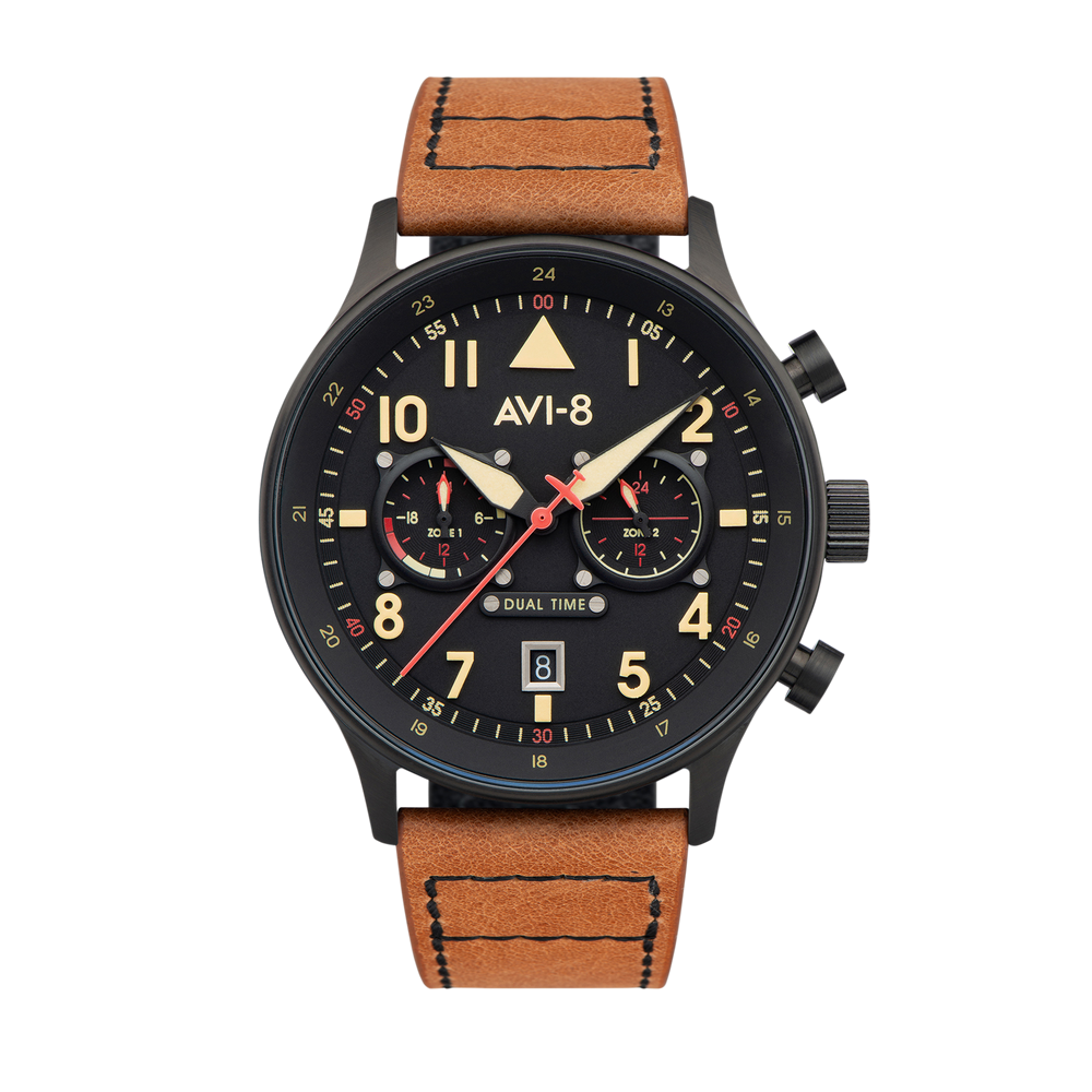 La Carey Dual Time incarne l'élégance d'une montre de pilote tout en honorant l'un des as britanniques les plus remarquables de la Seconde Guerre mondiale. Dotée d'un mouvement à quartz japonais à double fuseau horaire et d'une solide construction en acier inoxydable, elle s'avère idéale pour être portée au quotidien.