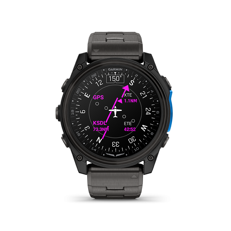 Conçue pour accompagner le pilote dans toutes les phases de vol, la D2™ Mach 2 intègre l’ensemble des fonctionnalités Garmin Aviation : navigation directe, HSI, METAR/TAF, alertes personnalisées, et accès aux aéroports les plus proches. La cartographie aéronautique avancée affiche les espaces aériens, pistes, superpositions de plans de vol et données météo critiques, dans l’optique de garder toutes les informations essentielles à portée (de poignet). Connectée à l’application Garmin Pilot™, elle permet de transférer les plans de vol, de recevoir des alertes en temps réel et de visualiser l’état de votre avion via la tehcnologie PlaneSync™. Par ailleurs, les commandes vocales embarquées et la fonction de notes vocales géoréférencées permettent d’interagir avec la montre sans lâcher les commandes du cockpit.