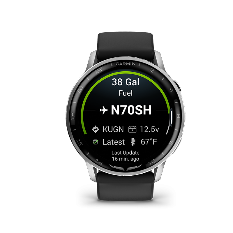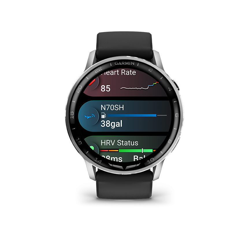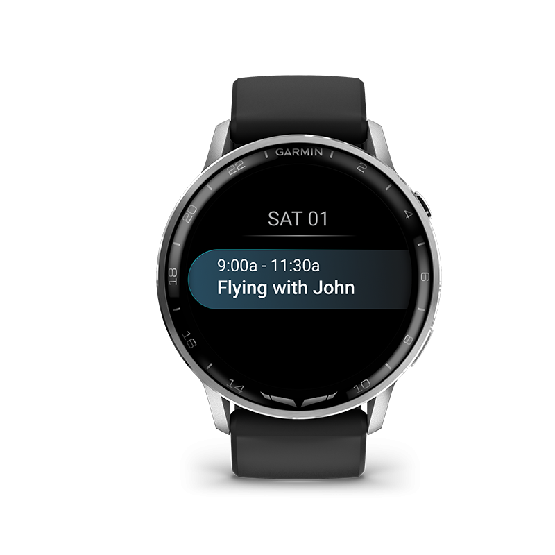 Grâce à son haut-parleur et microphone intégrés, la D2™ Air X15 vous permet de passer et recevoir des appels directement depuis votre poignet, ou d’utiliser l’assistant vocal de votre téléphone pour répondre aux messages. Elle prend en charge les notifications intelligentes, le stockage musical, et les paiements sans contact Garmin Pay™. Reliée à l’écosystème Garmin Pilot™, elle assure une synchronisation fluide entre les plans de vol, les alertes et les données avioniques, tout en offrant une compatibilité PlaneSync™ pour consulter à distance l’état de votre avion au sol.