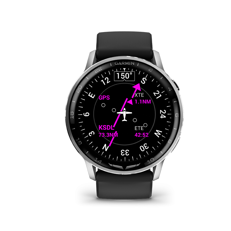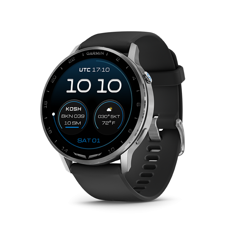 Pensée pour le cockpit, la D2™ Air X15 intègre l’essentiel de la technologie Garmin Aviation. Grâce à ses fonctions METAR/TAF, HSI (si vous êtes curieux, regardez nos vidéos explicatives sur ces termes), navigation directe, aéroports à proximité et alertes de sécurité, le pilote garde en permanence les informations critiques sous les yeux. L’application Garmin Pilot™ permet de transférer les plans de vol, de consulter les données avioniques et d’obtenir des alertes en temps réel directement sur la montre. La fonction de notes vocales géoréférencées permet même d’enregistrer des mémos de vol sans lâcher les commandes. De plus, le rapport matinal aviation fournit un aperçu complet des conditions météo du jour, pour un départ toujours bien préparé.