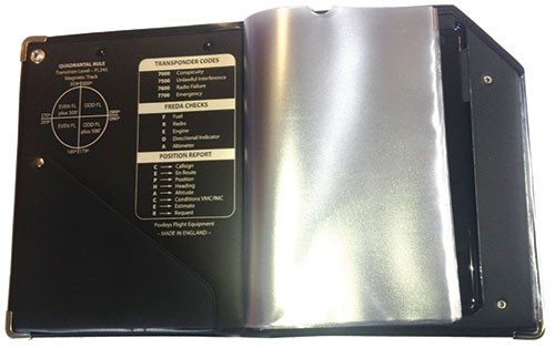 Le dos de la planche de vol est moulé afin de s'adapter à la forme de la cuisse avec la bande en velcro pour la fixer. Elle est munie d'une pince à ressort (sur le devant) pour tenir vos papiers en vol. Il y a aussi une pince pour tenir les crayons, une protection plastique transparente à l'avant, une poche intérieure pour tenir le rapporteur, traceur, calculatrice, etc.